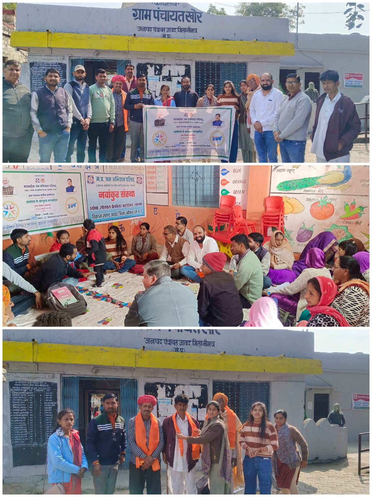 ग्राम चौपाल में ग्राम की उन्नति,वृक्षारोपण,जैविक खेती, जैविक खाद निर्माण,पशुपालन तथा स्वदेशी वस्तुओं के उपयोग पर विस्तृत जानकारी दी गई। साथ ही शासन की विभिन्न जनकल्याणकारी योजनाओं का लाभ अधिक से अधिक ग्रामीणों तक पहुँचाने के तरीकों पर भी चर्चा की गई। कार्यक्रम में ग्राम पंचायत खोर के सरपंच, बलराम जाट ,सचिव रमेशचंद्र धाकड़,सहायक सचिव,परामर्शदाता पूजा माली,सेक्टर प्रभारी देवीलाल धनगर,विनोद कुमार, दीपांजलि नागर, ग्राम विकास प्रस्फुटन समिति से संगीता धनगर व किरण राजपूत,समाजसेवी जगदीश धनगर सहित शुभम,अंकित,विक्रम,उषा एवं अनेक ग्रामीणजन उपस्थित रहे। कार्यक्रम के अंत में प्रस्फुटन समिति अध्यक्ष संगीता धनगर ने सभी अतिथियों एवं ग्रामीणों का आभार व्यक्त किया।