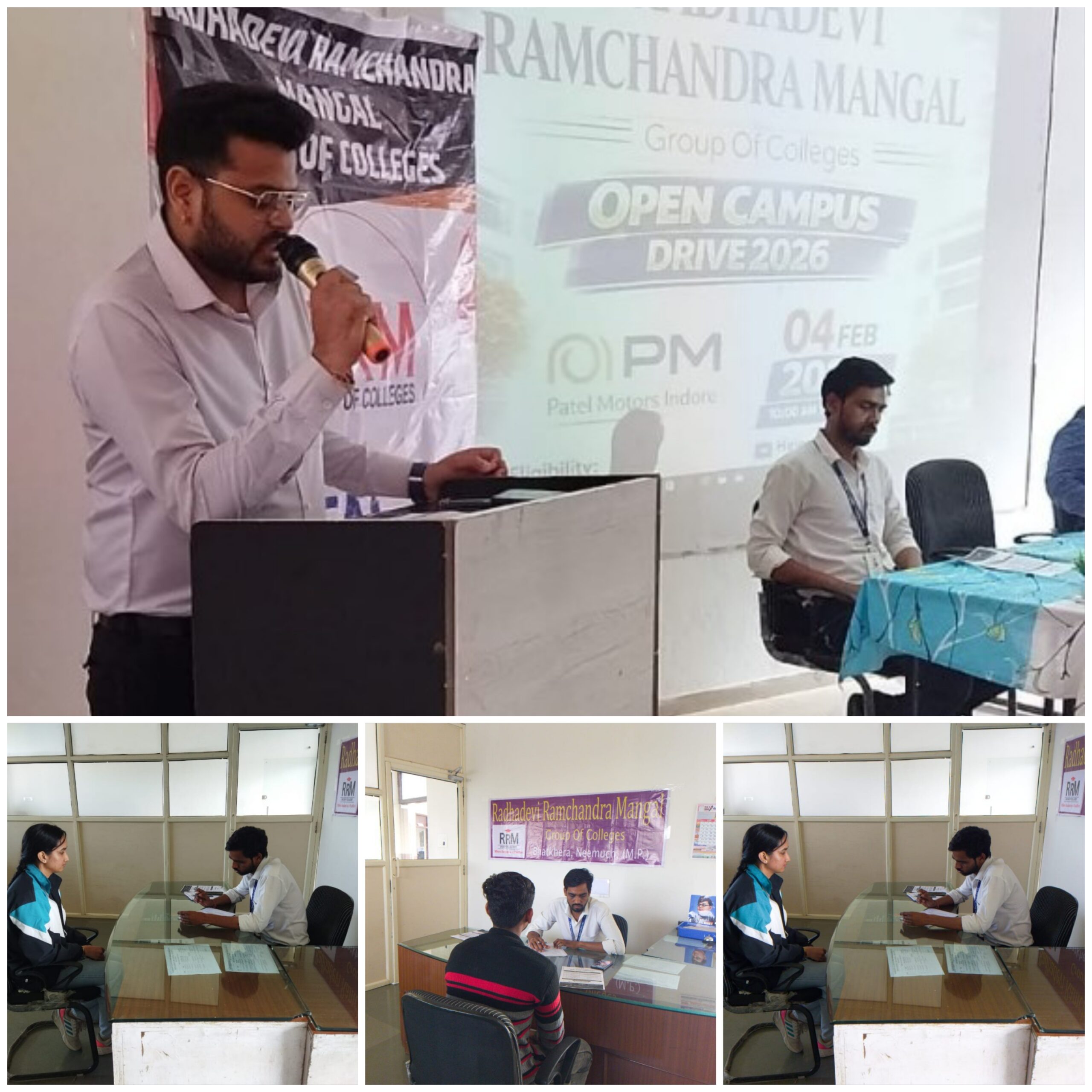 नीमच। भाटखेड़ा स्थित राधादेवी रामचंद्र मंगल महाविद्यालय में प्लेसमेंट की श्रृंखला के अंतर्गत दिनांक 4 फरवरी 2026 को पटेल मोटर्स, इंदौर द्वारा ओपन कैंपस प्लेसमेंट ड्राइव का सफल आयोजन किया गया। इस अवसर पर जिले सहित आसपास के विभिन्न क्षेत्रों से आए बड़ी संख्या में युवाओं ने सहभागिता कर अपने उज्ज्वल भविष्य की दिशा में कदम बढ़ाया। कार्यक्रम की शुरुआत पटेल मोटर्स, इंदौर से पधारे अधिकारियों द्वारा कंपनी की कार्यसंस्कृति, संगठनात्मक ढांचा, भविष्य की संभावनाएं एवं करियर ग्रोथ से संबंधित महत्वपूर्ण जानकारियां साझा कर की गई। इसके पश्चात चयन प्रक्रिया के अंतर्गत साक्षात्कार आयोजित किए गए, जिसमें प्रतिभागी युवाओं की योग्यता एवं कौशल के आधार पर विभिन्न विभागों में आकर्षक पैकेज पर चयन किया गया। प्लेसमेंट ड्राइव में शामिल युवाओं ने इसे अपने करियर निर्माण की दिशा में एक महत्वपूर्ण अवसर बताया। कार्यक्रम के समापन अवसर पर महाविद्यालय के प्राचार्य द्वारा पटेल मोटर्स, इंदौर से पधारे एचआर मैनेजर एवं अन्य अधिकारियों का आभार व्यक्त किया गया। प्राचार्य ने जानकारी देते हुए बताया कि विद्यार्थियों के उज्ज्वल भविष्य को ध्यान में रखते हुए आगामी समय में इसी क्रम में और भी प्लेसमेंट ड्राइव आयोजित की जाएंगी, ताकि अधिक से अधिक युवाओं को रोजगार के अवसर उपलब्ध कराए जा सकें।