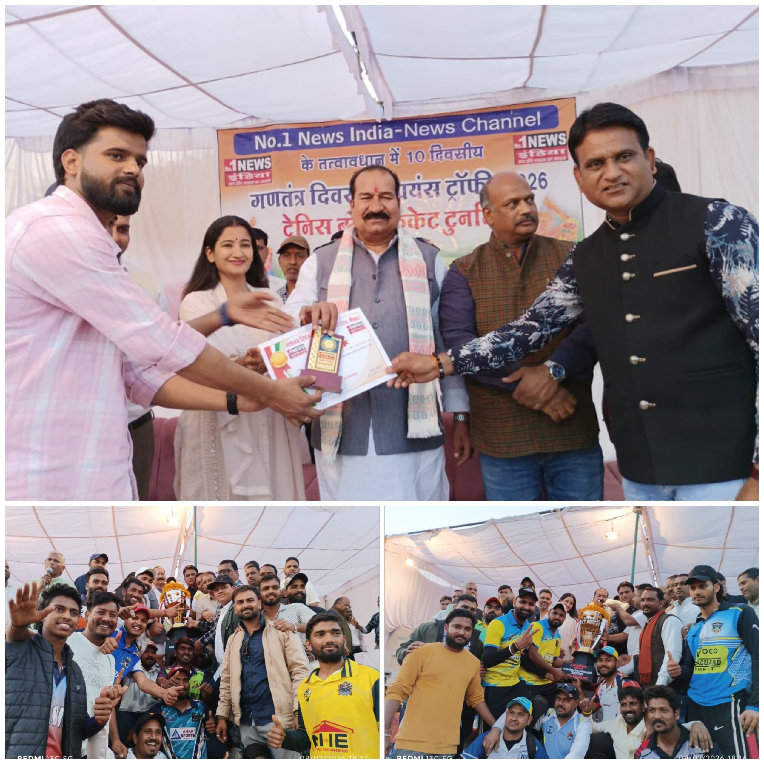 नीमच। नियमित खेल खेलने से शरीर स्वस्थ रहता है और स्वस्थ शरीर में स्वस्थ मस्तिष्क निवास करता है इससे विचार शुद्ध होते हैं और शुद्ध विचारों से व्यक्ति राष्ट्र विकास के कार्य करता है। इसलिए खेल स्वस्थ जीवन का प्रमुख आधार होता है। खेलों से जीवन में विकास होता है। यह बात विधायक दिलीप सिंह परिहार ने कही। वे नंबर वन न्यूज़ इंडिया क्रिकेट ट्रॉफी के फाइनल मैच में आयोजित पुरस्कार वितरण समारोह में मुख्य अतिथि के रूप में बोल रहे थे ।उन्होंने कहा कि खिलाड़ी यदि सजागता से खेल को खेले तो जीवन में सफलता और आनंद दोनों मिलते हैं। विजेता टीम साधुवाद की पात्र है। खेल में कोई उम्र और जात-पात नहीं होती है। खेल भावना हमें इससे ऊपर उठकर जीवन जीना सिखाती है ।खेलों में अनुभव से टीम विजेता बनती है। विजेता टीम अपना आत्म चिंतन करें और अपनी कमियों को दूर करें तो अगली बार वह टीम भी विजेता बनेगी। नीमच नगर परिषद की अध्यक्ष स्वाती गौरव चोपड़ा ने कहा कि खेलों में प्रोत्साहन से नई ऊर्जा का संचार होता है। खेल हमें संघर्ष के साथ जीवन जीना सिखाता है। खेल हार कर भी जितना सीखाता है। क्रिकेट प्रतियोगिता में जय श्री श्याम इलेवन टीम ने 9 ओवर में पहले खेलते हुए 129 रन बनाए , जवाब में पप्पू बना टीम ने सभी ओवर में मात्र 98 रन बनाकर सिमट गई। यह मैच जय श्री श्याम टीम ने 31 रन के अंतर से जीत लिया और नंबर वन न्यूज़ इंडिया क्रिकेट ट्रॉफी को जीत लिया। पमू बना टीम पराजीत रही।