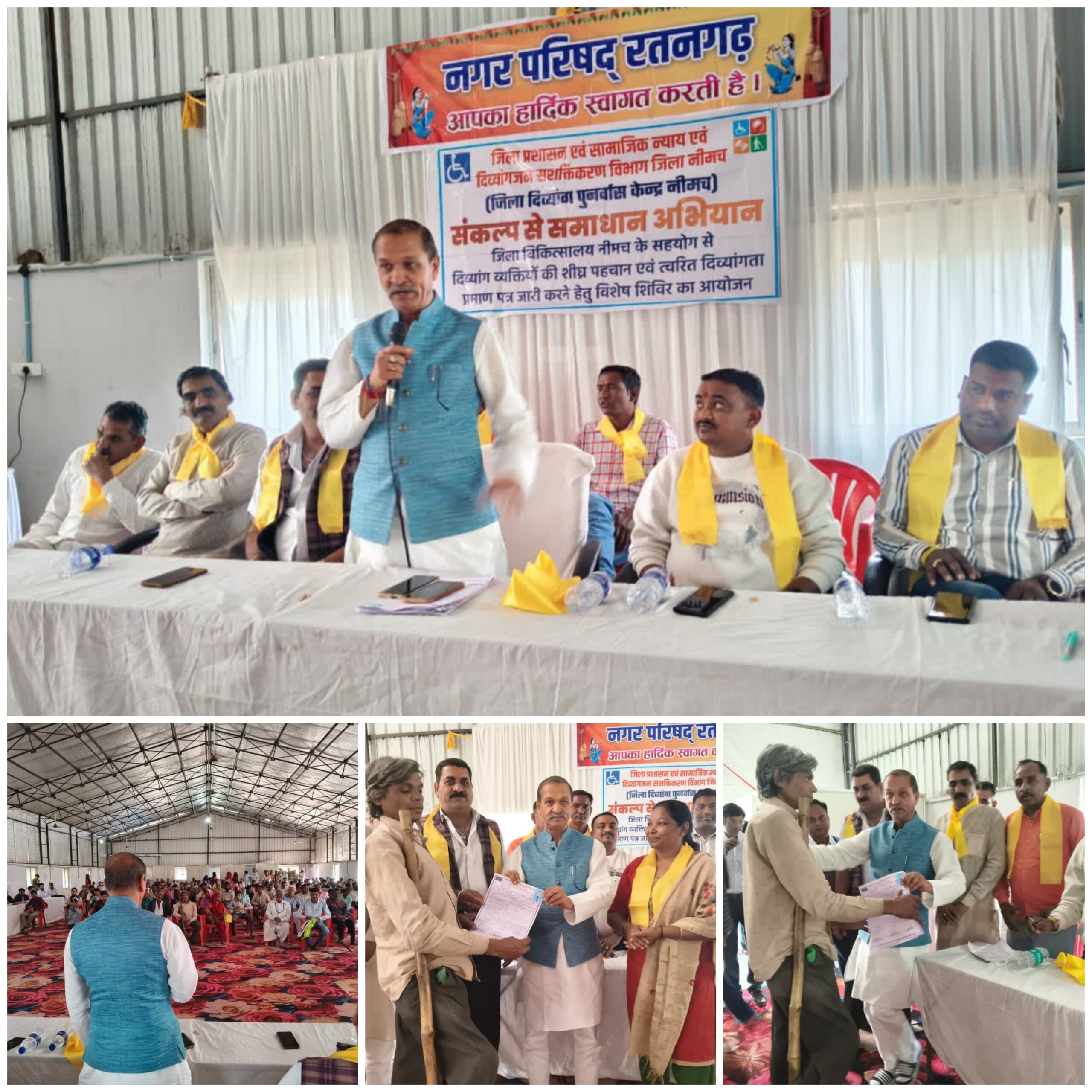 डीकैन। जिला प्रशासन एवं सामाजिक न्याय तथा दिव्यांगजन सशक्तीकरण विभाग के संयुक्त तत्वावधान में आज रतनगढ़ के वीरेंद्र कुमार सखलेचा सामुदायिक भवन में ‘संकल्प से समाधान’ अभियान के तहत एक विशाल स्वास्थ्य शिविर संपन्न हुआ। इस शिविर में रतनगढ़ सहित आसपास के ग्रामीण अंचलों से बड़ी संख्या में दिव्यांगजन अपनी समस्याओं के निराकरण की आस लेकर पहुंचे।