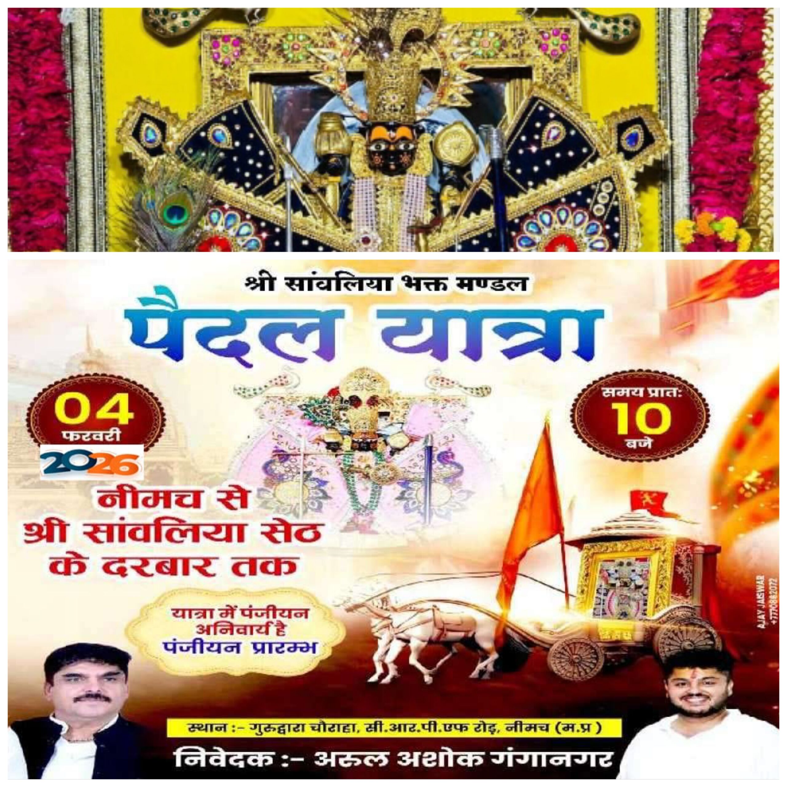 नीमच। आगामी 4 फरवरी 2026 को नीमच से 90 किलोमीटर दूर पैदल चलकर मंडफिया धाम पर आस्था का सैलाब पहुंचेगा। प्रतिवर्ष अनुसार इस वर्ष भी सांवरिया भक्त मंडल नीमच द्वारा धूमधाम से पैदल यात्रा निकाली जाएगी। इसकी तैयारियां अभी से शुरू हो गई है। शहर से लेकर ग्रामीण क्षेत्रों में प्रचार—प्रसार शुरू हो चुका है। इस वर्ष सांवरिया सेठ की पैदल यात्रा इतिहास रचने जा रही है।सांवरिया भक्त मंडल के गोपाल गर्ग (जीजी) ने उक्त जानकारी देते हुए बताया कि सांवरिया सेठ की पैदल यात्रा की तैयारियां अभी से शुरू हो गई हैं। मकर सक्रांति के शुभ मुहूर्त पर 14 जनवरी 2026 से पंजीयन शुरू हो जाएंगे, गंगानगर आफिस जैन भवन रोड बंगला नंबर 48 में पंजीयन प्रारंभ होंगे। प्रसिद्ध समाजसेवी अरूल अशोक गंगानगर द्वारा इस पैदल यात्रा को दिव्य और भव्य रूप देने के प्रयास किए जा रहे है। चिकित्सा सुविधाओं के लिए विशेषज्ञ डॉक्टरों की टीम साथ चलेगी। पूरी यात्रा के दौरान भजन कीर्तन गायन सहित अन्य धार्मिक आयोजनों को लेकर बेहतरीन भजन गायकों को बुलाया जाएगा। इसकी रूपरेखा तय की जा रही है। जगह—जगह स्वागत करने वाले संस्थाओं,संगठनों, समाजसेवियों की लिस्ट पृथक से तैयार होगी,ताकि रूट में स्वागत करने में आसानी हो।